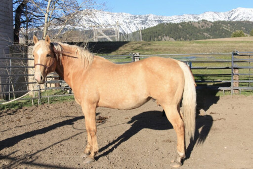 60 days of training as a 3-year old. Has pasture-bred AQHA registered mares for 11 years producing palomino, buckskin, bay and sorrel foals. Consistent producer. Gentle horse. I have lots of photos of his foal crops, please call or text and I will get them to you.
