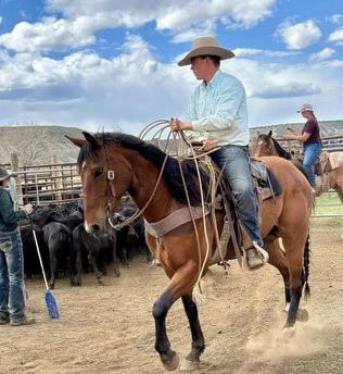 Tyson is a very handy broke gelding. Patterned on the barrels and roped cattle in the arena and outside. He’s been in the outfitting string as my personal daily horse and a guide horse for 4 years. He has buttons and can be a bit much for the dudes. He has some quirks, mostly on the ground but not a bronc. May saddle up tight with time off but nothing treacherous. Not for grandma but a great using horse. Take him and finish him in the arena.100% sound and seen a lot of miles. Give me a call I’ll be honest about his quirks. I’ve enjoyed this horse, just downsizing the herd.