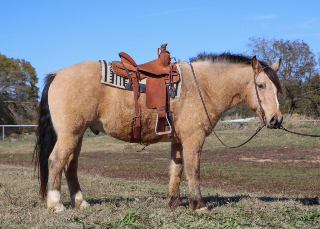 Chubbs is a crossbred gelding that stands 15.1hh and stands as wide as he is tall. Gentle, gentle and one of my favorites. He’s been at the ranch for over 2 years and been used for everyday ranch work and turning back in the cutting pen. Safe and gentle for about anyone who can pull on the reins.
