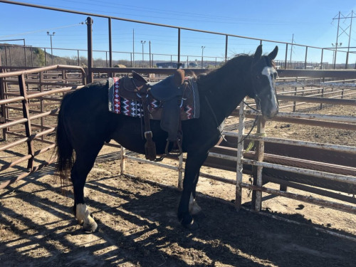 Charcoal is a well put together gelding with a ton of foot and bone. We have used him to pen cattle. Likes to work and can go all day. Would be a good mountain horse with his strong bone structure.