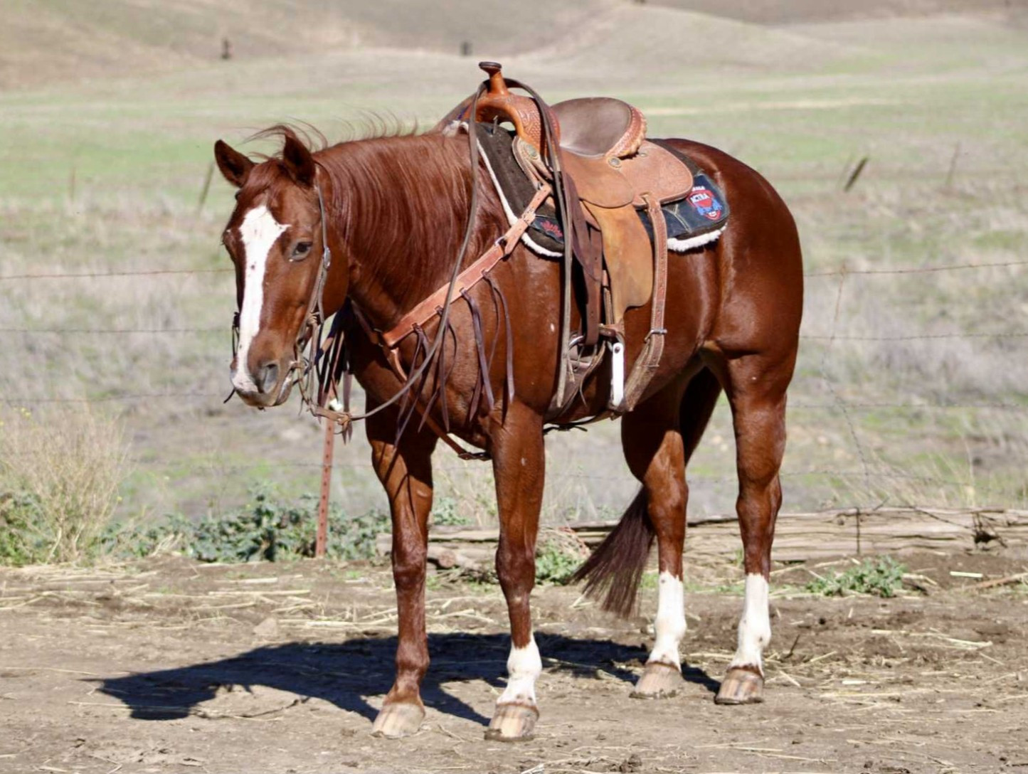 Ada is a thick, stout, 14.3 hand sorrel mare with the perfect mix of athleticism, brains, and a calm, safe attitude. At 14 years old, she has seen and done more than most horses ever will, and she rides just as pretty as she looks. This mare is a true ranch hand. She has been used extensively on the ranch, travels out with confidence, and is sure-footed as a goat no matter how steep or rough the terrain. Ada knows how to use her body, handles hills with ease, and has unmatched stamina, she’ll go all day without quitting. Beyond ranch work, Ada is finished and solid to rope on out of the box, and is suitable for any rider who wants something dependable and seasoned. Nothing fazes her. She has zero spook, has seen absolutely everything, and takes it all in stride. She has carried flags at rodeos, competed on trail courses, and will cross anything you point her at on the trail. Ada loves cows and would be the ideal partner for a cowkid wanting to keep up with Dad, a confident adult rider, or someone who wants a competitive cross country trail horse. She is the perfect mix of speed, safeness, and calm, hard to find in one package. She hauls like a dream, gets along with anyone, and has excellent manners. She clips, stands for the farrier, and is easy to handle in every way. If you’re looking for a solid, dependable, all-around mare with the heart and ability to do any job, Ada is the one. She is located in Bitterwater, CA for more info contact Cheyenne at 831-537-8746.