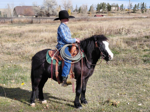 Stands around 10.3 hands. If you have a kid that is looking for their next step up that they can go saddle and ride by themselves Jet might be you guy! My son has been riding him for the past 2 years and has done about everything a boy can do on a pony. The two of them can gather a lot of cattle by themselves. Jet can keep up with the big horses all day every day. He is a surefooted little guy that can pack a kid places you wish they wouldn’t go! Good about his feet, jumps right in the trailer, gets a long good with other horses, he doesn’t buck and he doesn’t kick. He is nervous around adults and has a lot of go. We recommend him for a kid that is a confident rider. Honest, darn good pony that can keep up! Willing to hold for up to 10 days while hauling is being arranged. We will happily meet new buyer/hauler up to 150 miles from home place.