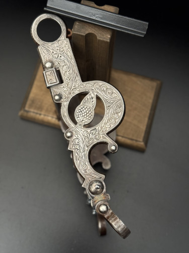 Looking to sell a BEAUTIFUL marked “FRANCO 2010” full silver overlaid engraved spade bit. Beautiful bit, in excellent condition, displaying an acorn motif, full engraving on the cheeks with copper rollers and cricket .