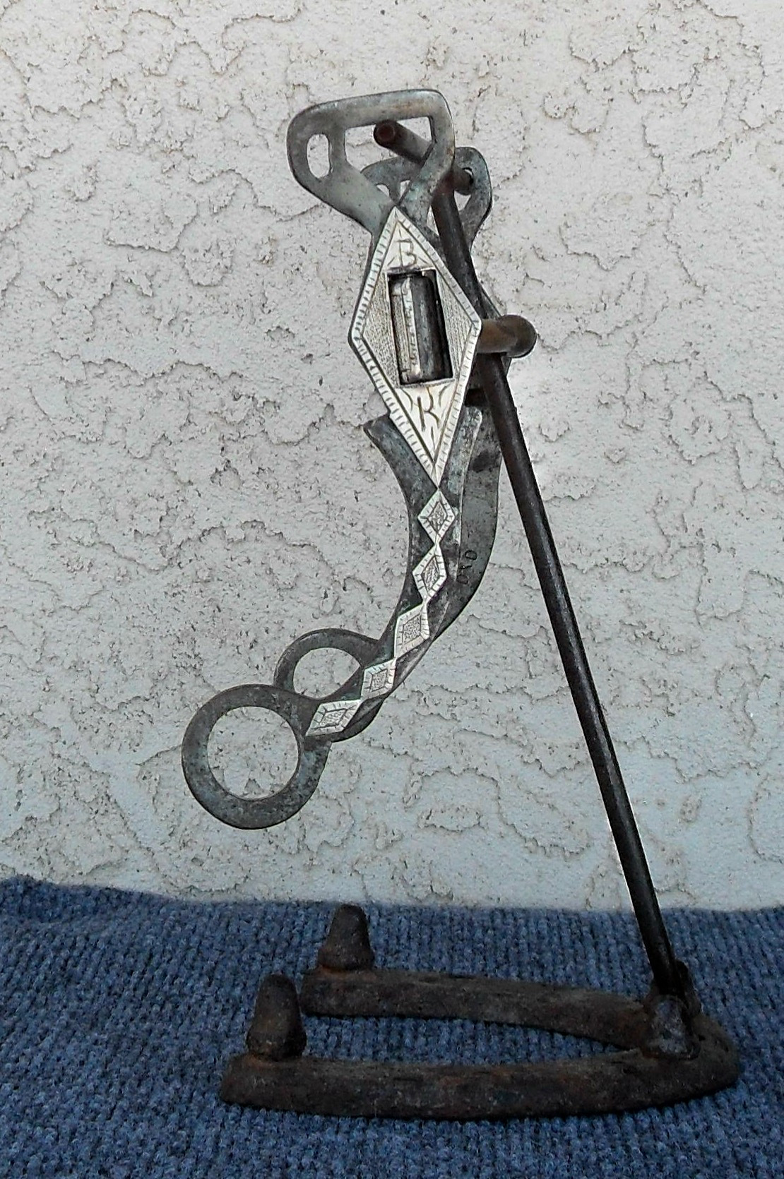 Extremely nice shank snaffle made & marked by Daryl Davis of Brock, Texas. The 6 ¾” shanks are adorned with14 pieces of engraved Sterling silver that adds eye appeal. The mouth-piece is overlaid with copper for softness. Great bit to use or collect. Maker marked DD and #201. $310.00 includes shipping to the lower 48. Please phone calls only.