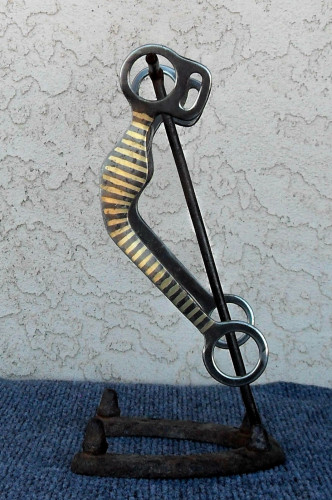 Very useable pre-owned Buster Welch style unmarked bit from AMOZOC, Mexico. The 7 ½” shanks are inlayed with 54 brass strips that are easy to look at. The mouth-piece measures 5 inches. $175.00 includes shipping to the lower 48. Please phone calls only.