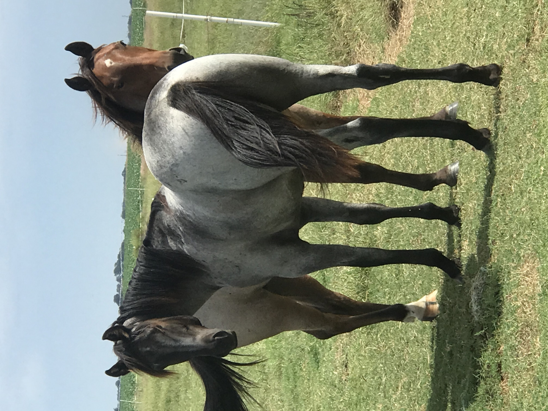 Big, stout and gentle blue roan stud colt. Cow bred on both sides. Leads, loads and stands tied. He will mature to 15+ hands and is a true blue roan with no white. Possibly homozygous roan as his mother is a grullo. Located in central Oklahoma.