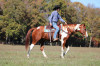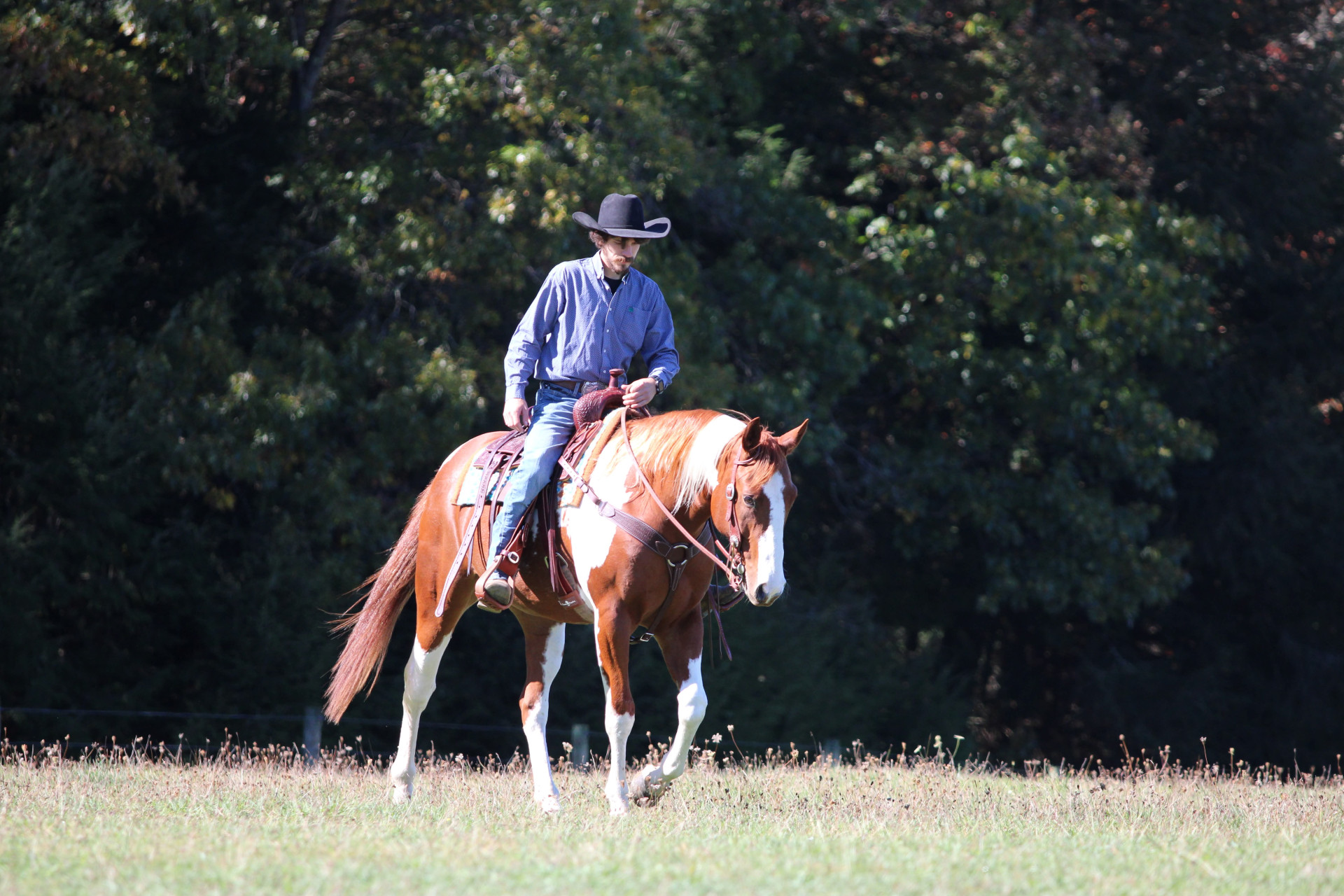Big G has been used as a ranch horse in South Dakota where he did all aspects of ranch work. He is very very well broke any level of rider will appreciate him. He has a soft one hand easy neck rein, he gives nicely to leg pressure, side passes both directions easily. Walks on a loose rein and Trots smooth and collected. He will pick up both leads at a lope and has a nice stop and back up. Big G will open and close gates, stand to be mounted and go all day on the trails! He has spent most of his time out on the trails or working the ranch moving cattle but he is also a fantastic arena horse he would make a nice lesson horse or even show horse. Big G has a great mind and a willingness to learn. He could go western or English.