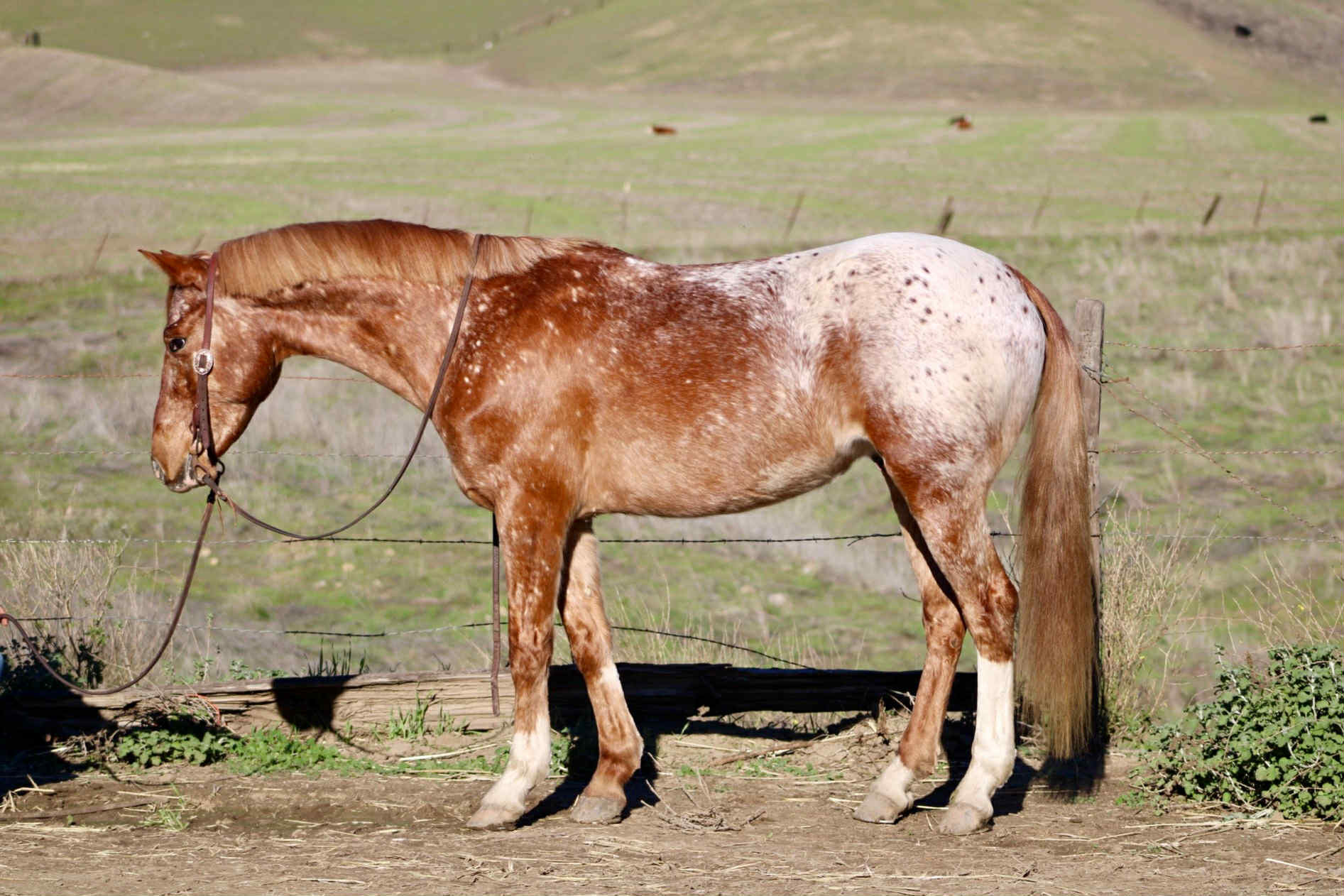 Biggs, a 10-year-old grade Appaloosa gelding who truly embodies everything a dependable trail partner should be. Stands 14.2 hands high, Biggs may be compact, but he carries himself with the calm confidence of a seasoned veteran. His gentle disposition and unshakeable steadiness makes him a horse that riders of all levels can trust and enjoy. Biggs is an expert on the trails. He has been ridden straight from the house, through town, and all the way to the beach, where like most of us, is happiest by the water. He has zero spook; nothing flusters him, and he remains calm, cool, and collected in every situation. Whether faced with traffic, farm equipment, wildlife, or unfamiliar terrain, Biggs approaches each new experience with quiet assurance. He is a true “point-and-go” type, Biggs never hesitates about direction and willingly travels wherever he is asked, making him an ideal companion for riders who value reliability. He even has a few fun tricks to show off—he will lay down with a light cue and sit up like a puppy, adding a bit of charm to his already lovable personality. Under saddle, Biggs is responsive and well-mannered. He neck reins lightly, listens to all cues with an easy, willing attitude, and moves with a nice medium-soft pace that keeps riders comfortable for hours. In the arena, he knows his leads, carries his head low, and stays relaxed and steady. On the ground, he is just as polite, handling easily for grooming, tacking, and everyday care. Biggs has been around cows, farm animals, traffic, and all sorts of noises, making him well-seasoned for the weekend warriors, or everyday riders. He is absolutely safe for anyone to ride, and his kind demeanor makes him a joy to be around. For riders seeking a trustworthy, unflappable, and fun trail horse with a willing heart, Biggs is the total package. He is located in Bitterwater, CA. for more information please contact Cheyenne at 831-537-8746.