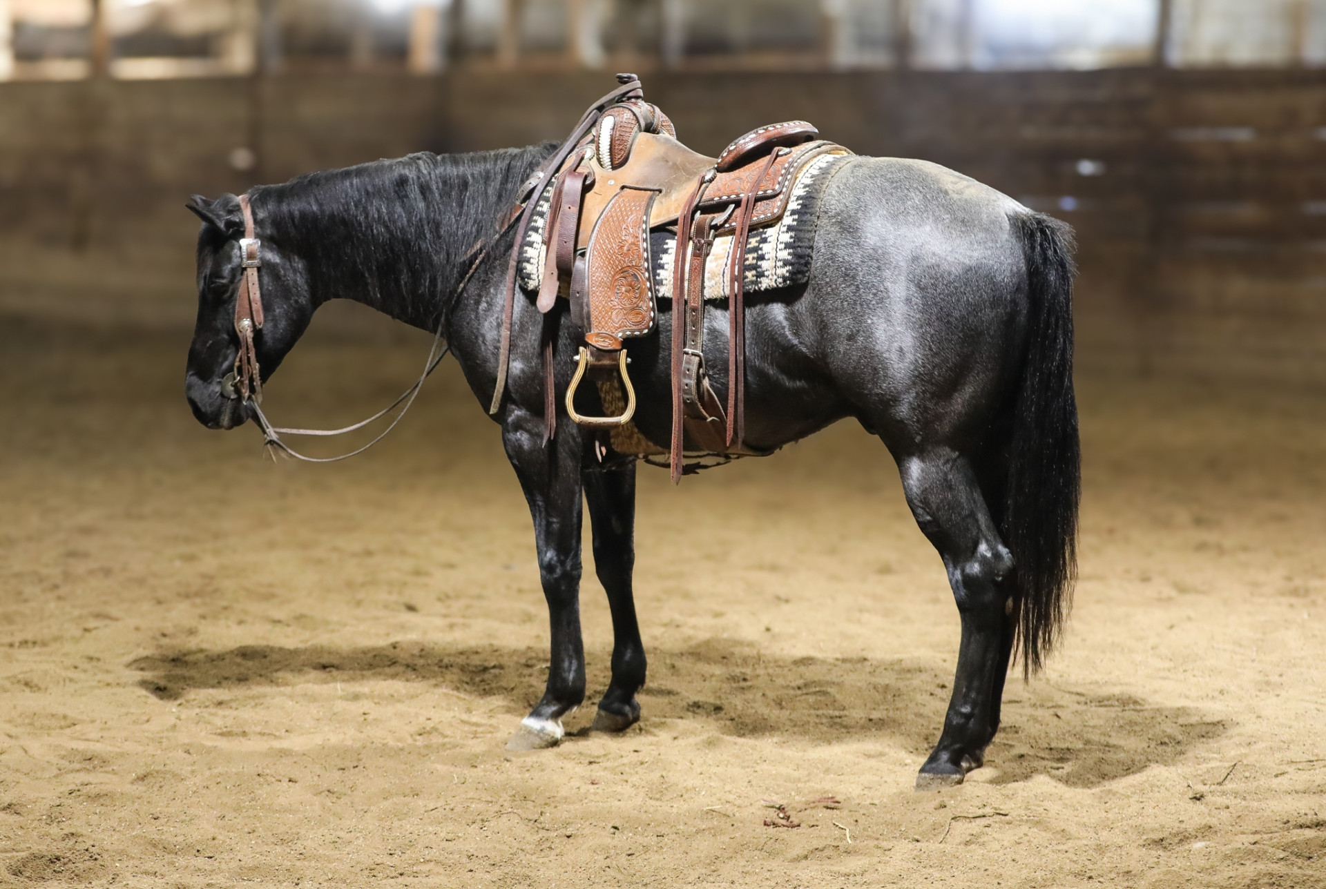 "Sterling" is a blue roan grade quarter horse gelding. He is a gentle all-around horse who has been on many trail rides and used all over the ranch! He has been through town and is good with traffic. Sterling crosses logs, goes through water, steep hills, or anywhere you point him! He also rides well in the arena. He knows both leads and has a nice stop. He is easy to catch and good in his stall. Sterling trailers well and is patient to mount and dismount.