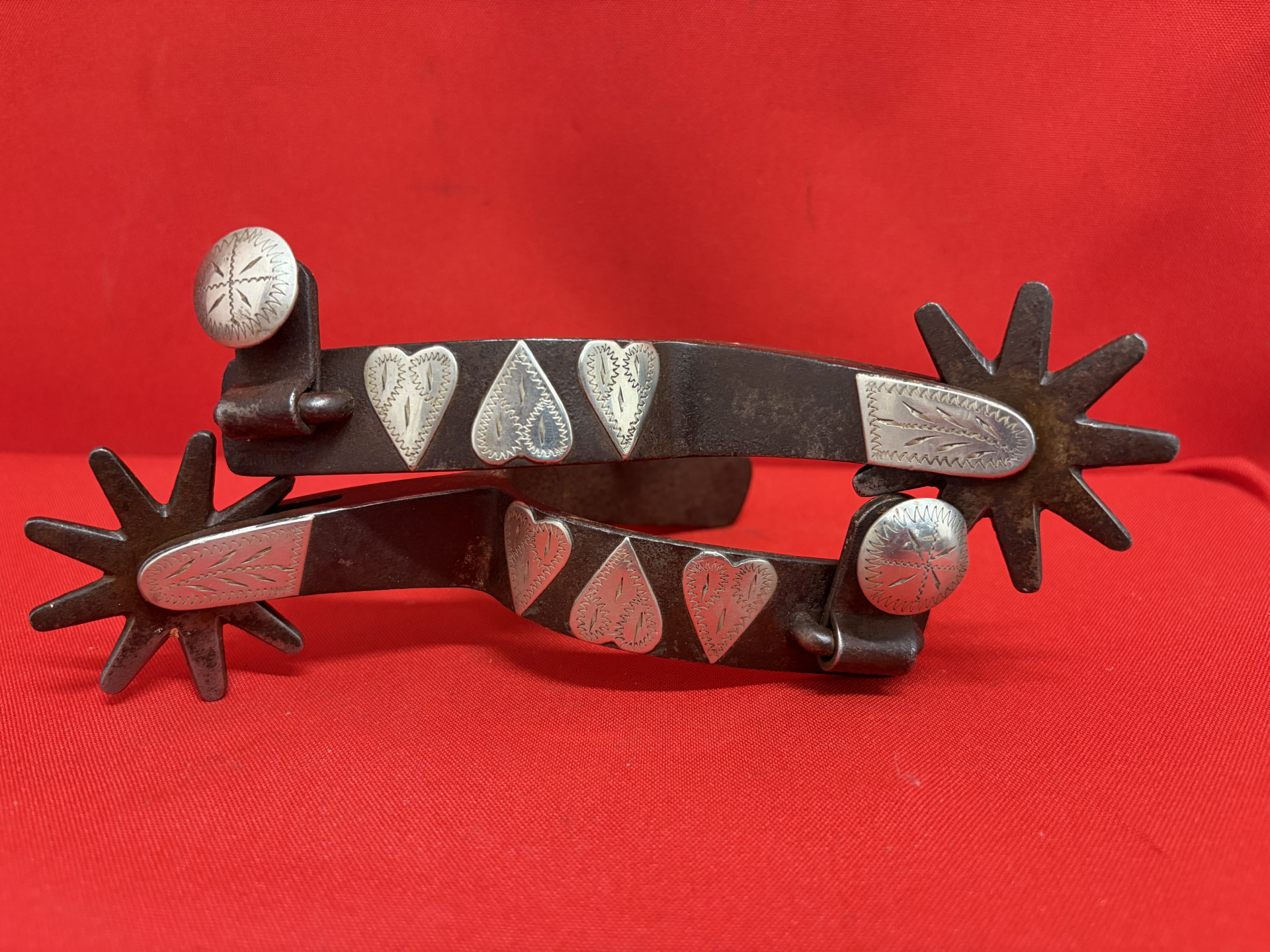 Very nice pair of CROCKETT marked spurs with 2" rowels, 3" heel openings that can be spread, 2 1/2" shanks, 7/8" bands. I believe that these are from the 1935-1938 era. We pay shipping within the 48 states. We accept most forms of payment.