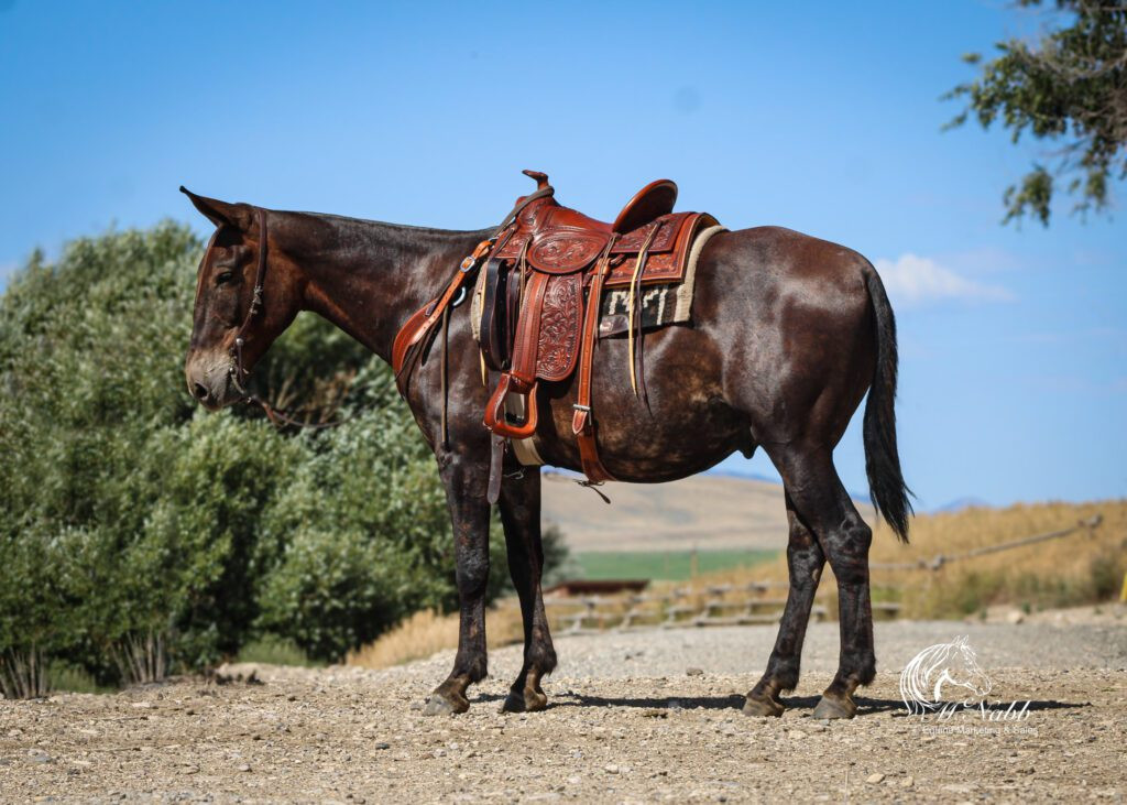 Vegas is a 7 year old black john mule that stands 16hh. He is a gentle mule that can carry any type of load including meat and horns. Need an extra rider in a pinch? Vegas will work for that too. We have ridden him on the trails, lead strings off of him, and put a guest on him in a pinch. Vegas crosses logs and water, loads into a trailer with ease and is hobble broke. He easy to catch in a smaller pen. Vegas is a go all day in your pocket 27/7 type of mule and we are excited to see what he will bring to his next string. UTD on Vaccines and Worming. PPE’s are welcomed at buyers expense. UTD on Vaccines and Worming. We will hold for 7 days without charge and are willing to help organize hauling from the ranch. After the 7-day holding period, equine insurance will be required, and proof of coverage must be provided. Come to the Ranch and meet the sale horses Dec 13th 10am -4pm. NO RESERVES = Everything will sell. Phone calls or text messages are welcomed.
