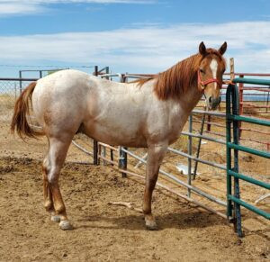 Horses For Bid at Auction: BUST A MOVE TU OKLA – 2023 AQHA Red Roan Gelding x Starway Tu Oklahoma x Starway Lad out of Obviously NotABlonde x Obvious Kid Clu! #205316