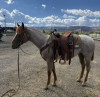 This horse was started by me then ridden by a beginner. He’s toted children around and dogs. He’s also been ranch and sorted from. No spook, rear, kick, or buck. He is a bit green but does well in tough situations. He’s been roped on and doctored/sorted cows off of. This horse can go in any direction you want him to go. Dog gentle, willing to please, beginner friendly. Will hold for 7 days after sale after that it’s $20 a day. Hauling needs to be arranged from horse location.