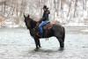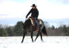 He has been ridden outside a lot and handles new places with a calm mind. He goes through water, steps over brush and logs, and stays steady even with activity going on around him. He has been around dogs, chickens, goats, and farm traffic and stays quiet. He has also been used around cattle and does well when asked to sort or move them.