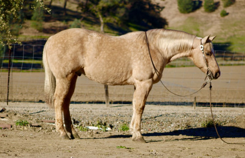 Beamer is one of those geldings that’s simply easy to appreciate. He’s stout, correct-built, golden, and carries a soft, honest expression that tells you he’s the same horse every day. He’s a genuinely good-minded gelding that makes riding and owning him simple.