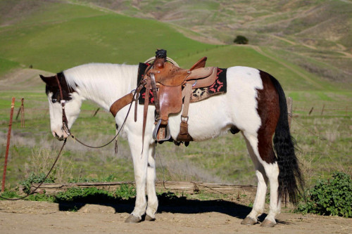 Blueboy is a handsome 12-year-old, 14.2hh paint gelding with two striking blue eyes and an easygoing, willing personality. He is a joy to be around and very simple to handle, making him a pleasant and reliable partner for a variety of riders. Blueboy has extensive experience on trails, roads, and in the arena. He excels on the trail and genuinely enjoys going on adventures. He travels confidently through steep, narrow terrain and moves with surefooted ease. He will lead the group without hesitation, ride calmly and consistently in the back, or go out alone with no issues. He is not buddy or barn sour and remains steady regardless of the situation. He also loves the water and will cross anything placed in front of him. Under saddle, Blueboy has a natural low headset and is very easy to direct. He neck reins, responds well to leg cues, has a dependable stop, and catches both leads easily in the arena. He is soft, responsive, and comfortable to ride. Blueboy is also good with time off and does not get fresh when brought back into work. He loads and hauls well and gets along nicely with other horses. With his temperament, trail experience, and solid training, Blueboy would make an excellent horse for trail competitions or for anyone looking for a trustworthy, enjoyable partner both in and out of the arena. He is located in Bitterwater, CA. for more info contact Cheyenne at 831-537-8746.