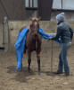 She’s gentle, willing, and brave. Quick learner and comes right up to be caught. She’s had lots of ground work done and ties, loads, lunges, bathes, picks up her feet, and stands for the farrier.