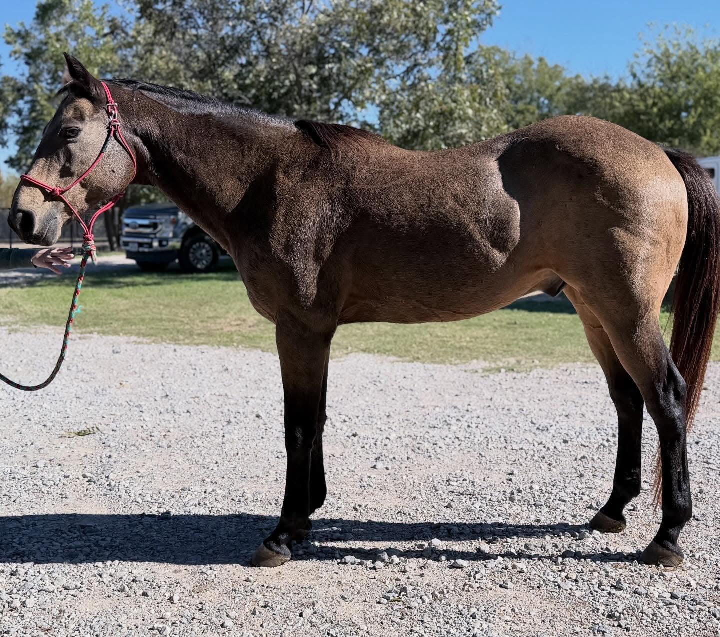 This is Ruger he is a 15yr old 14.2h dark buckskin gelding. He is very sweet and gentle. Been rode by all ages, he is a steady eddie type horse. Great playday horse without having too much speed, lots and lots of trails. Good with wildlife and other animals. Super fun no spook or silliness, easy to catch. Good in mixed herd. Loads and hauls great. Good with farrier UTD on all $8500 Weatherford, TX call or text 254-433-0806