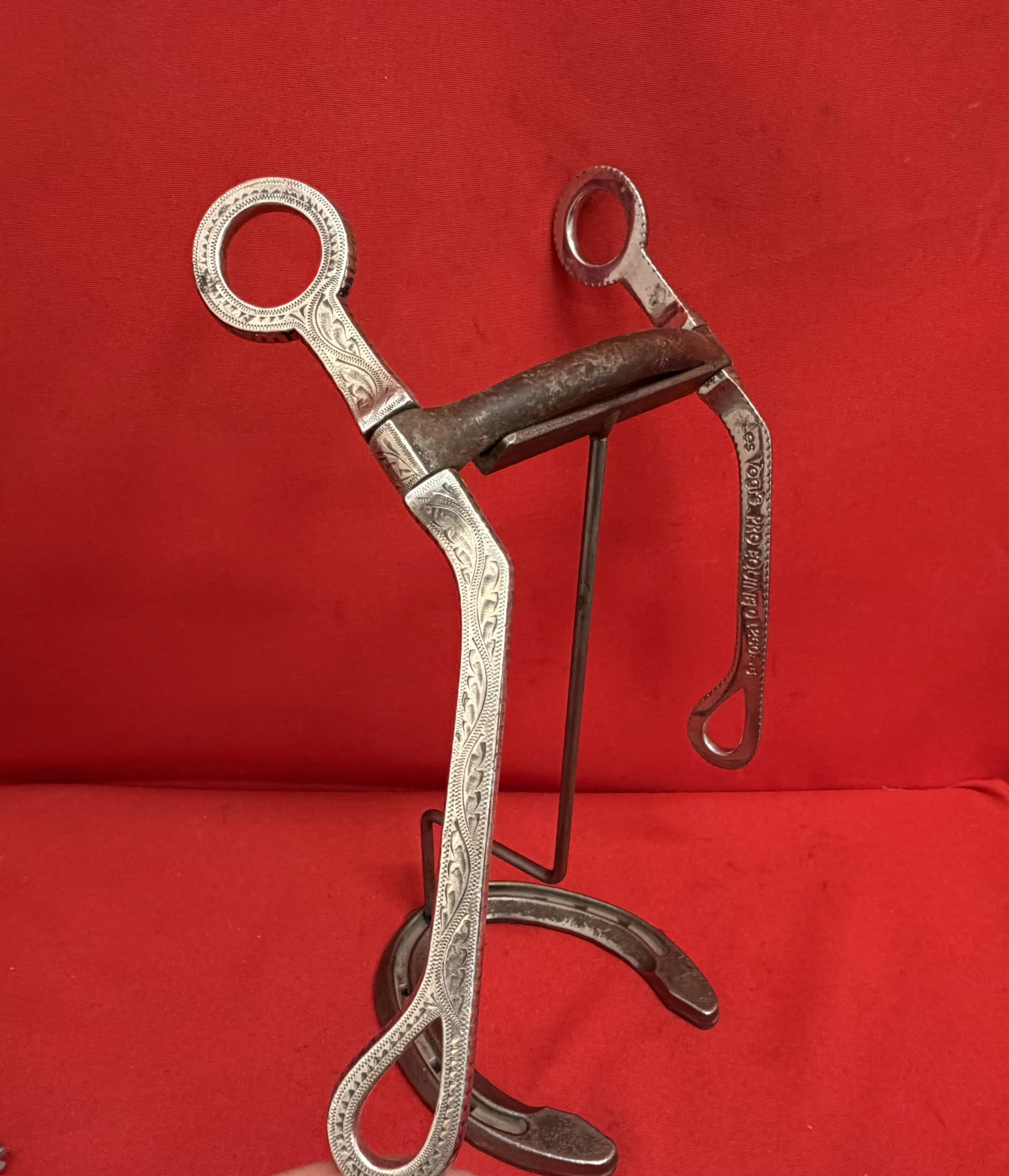 LES VOGT’S PROE EQUINE marked bit in good condition with many copper inlays in the 5" mouth. Has sterling overlaid and inlaid 7 3/4" cheeks. Quality horseman’s tool. We pay shipping within the 48 states. We accept most forms of payment.