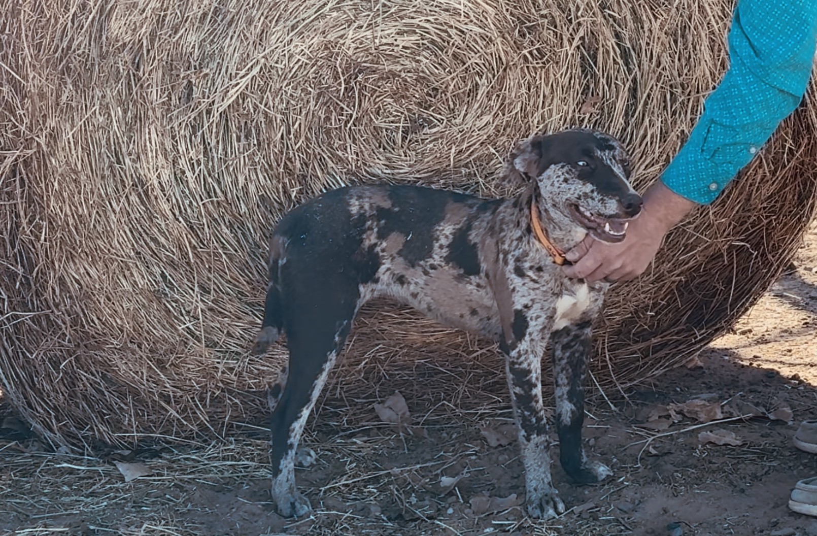Red Leopard: Skirts is a 7 month old purebred Catahoula female. By a registered male, and out of a grade female. Her parents were bred to hunt hogs, but she could work cattle or be started towards a hunting dog. She has been lightly started on goats and cattle and wants to work. Not as heady as I would like, but still wants to work. She would do better with experienced dogs, and a little time. She’s has a very kind disposition and is very loyal. Listens really well $600 obo