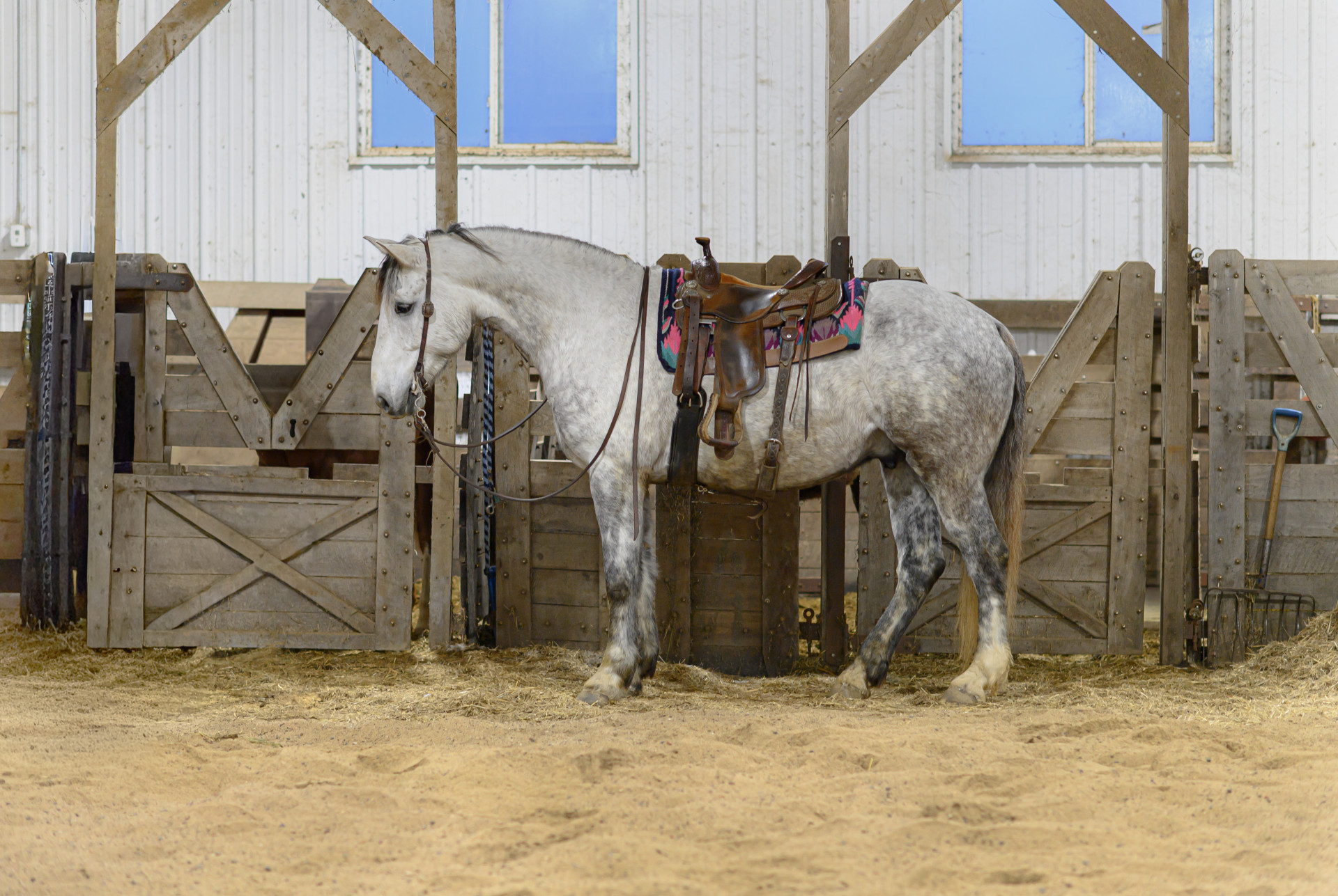 Fiyero — 6-year-old dapple grey draft-cross gelding, 17.1 hh. Big, beautiful, and impossibly polite, he’s the kind of horse everyone falls for the first ride. A gentle old soul with a brain to match: quick to learn, kind and ridiculously willing — we’ve run out of new things to teach him because he tries everything with %110