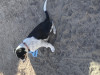 His sire is a grade ranch dog, he is a great family dog, and also works cows almost every day. Stetson has been started on goats and been on some calves. He’s been out on rides pushing cows with the big dogs. Staying with the horse the whole time.