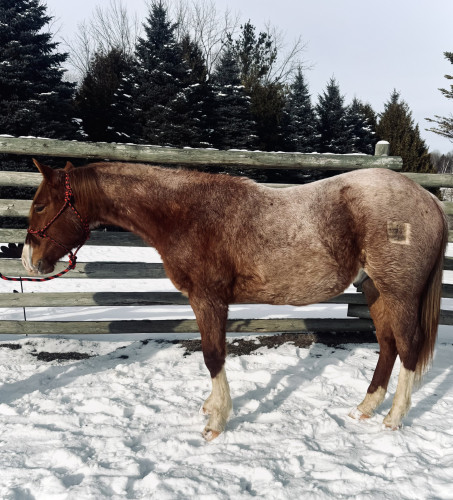 2024 Colt - Grandson of Metallic Cat & Great Grandson of On The Money Red AND Playgun! This colt is very quick on his feet, smart and about as flashy as they come. Walks right up to you in the pasture, respectful on the ground, leads, loads, ties and picks up his feet. This colt will be the perfect addition to any program.