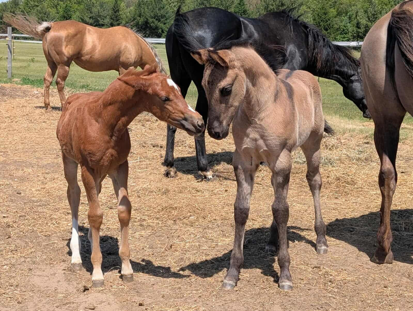 He’s going to be a big, heavy but athletic horse. In the photo with the 2 foals they’re 4 days apart and the red filly wasn’t by any means small.
