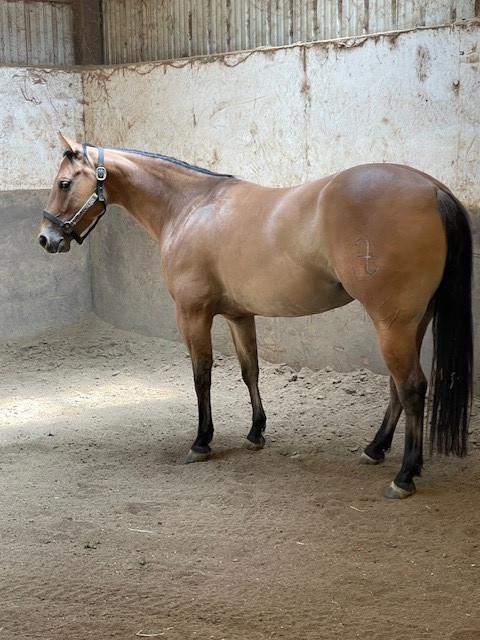 This eye catching filly has been shown in 4 ASHA classes (ranch pleasure, trail, boxing and reining) in 2025 and ended up top ten for her division at her last show. She’s also been to the sorting pen and did well in competition there. She knows the difference between the practice and show pens and loves the limelight. In professional training with cowhorse trainer for over a year, and has training for cowboy dressage. On her top side, she’s by the late Guns R For Shootin (by Gunner) and on the dam’s side a granddaughter of Walla Walla Whiz and Gun Affair (Gunner x Memorable Affair). Royally bred - GUNNER - SHINING SPARK - WALLA WALLA WHIZ - TOPSAIL WHIZ - PEPPY SAN - TOPSAIL CODY with a strong work ethic, this little gal loves to work cattle. She needs to go into a show home. Selling as part of a partial herd dispersal due to Owner’s health.