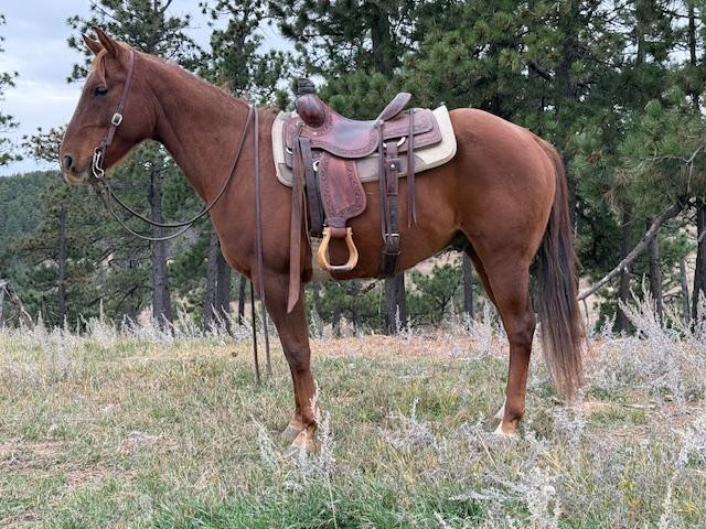 ACRE OF REY "Rey" - 2014 Sorrel AQHA Gelding. He is a seasoned, reliable 15 hand gelding with a solid resume as a ranch or trail horse. He has been ridden extensively in flat country as well as mountain terrain, making him surefooted and confident wherever you take him. He has a smooth, flat walk at any pace you ask! He is willing and responsive under saddle! Rey will cross water and step over logs and handle all obstacles with ease. Whether you’re looking for a partner for long trail rides, working cattle, or just a gentle gelding to enjoy, Rey fits the bill!