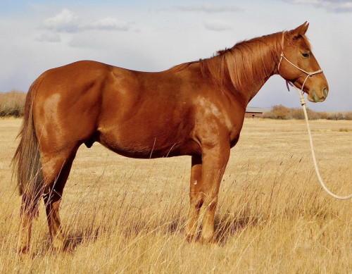 CBM MERADAS PEPTO "Steven" - 2021 Sorrel Quarter Horse Gelding. We would like to introduce Steven! This gentleman has been an awesome part in our string, being very involved in all aspects of ranch work that goes with being a working cowboy’s partner. This gelding has seen it all! From doctoring, shipping, starting young horses, to easy and slow trails moving cattle in the mountains. This gelding also has the fancy handle we all want with spins, stops, and pretty circles to go with his charming personality and real-world experience! If you want to go to a ranch horse show, calf branding, or just an afternoon trail ride, then don’t miss out on this awesome gelding.