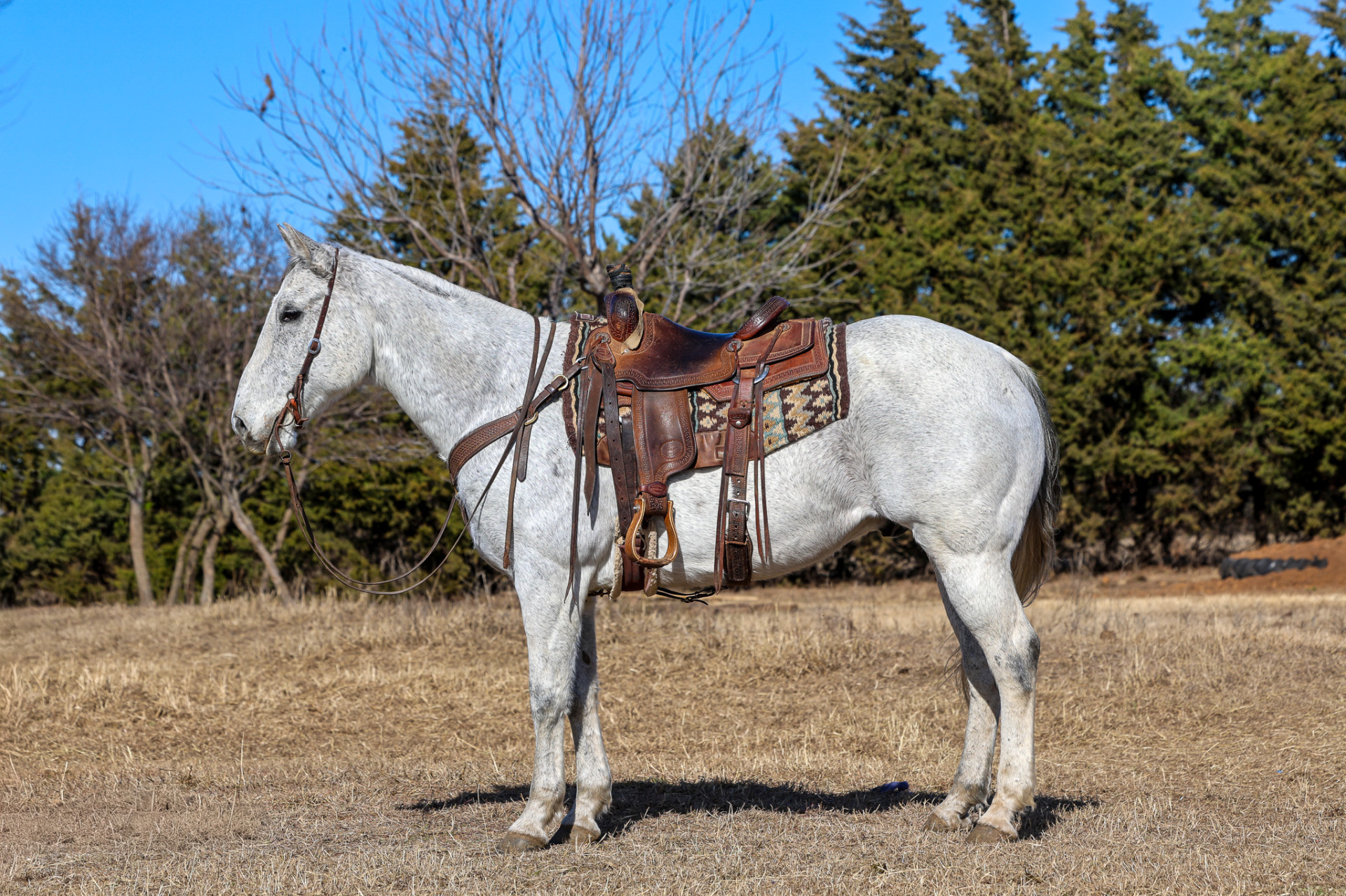 Napoleon is a kind hearted, gentle gelding. He comes with plenty of shape, size and eye appeal. Napoleon in his previous years was a head horse and a very good one at that. For us Napoleon has been a solid trail horse! He’s down for whatever the trail has to offer, water crossings, wild life, bikes, traffic, you name it he handles it with ease. Napoleon is extremely easy to catch, he stands patiently to be saddled and is great for the farrier. He has an old fashioned one hand neck rein, a big stop and a beautiful back up. You can ride him in a halter, bit, bosal, shoe string, he doesn’t care. Napoleon has been rode English and western. Ride him to town, take him fishing, go get work done out on the ranch, you name it, you’ll enjoy him! Call Trevor for more info at 406-570-4936. 7 days free of charge. $20 a day after that. Willing to help arrange transportation