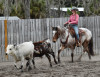 He has been introduced to moving cows; she’s very naturally drawn to them and comfortable around them.