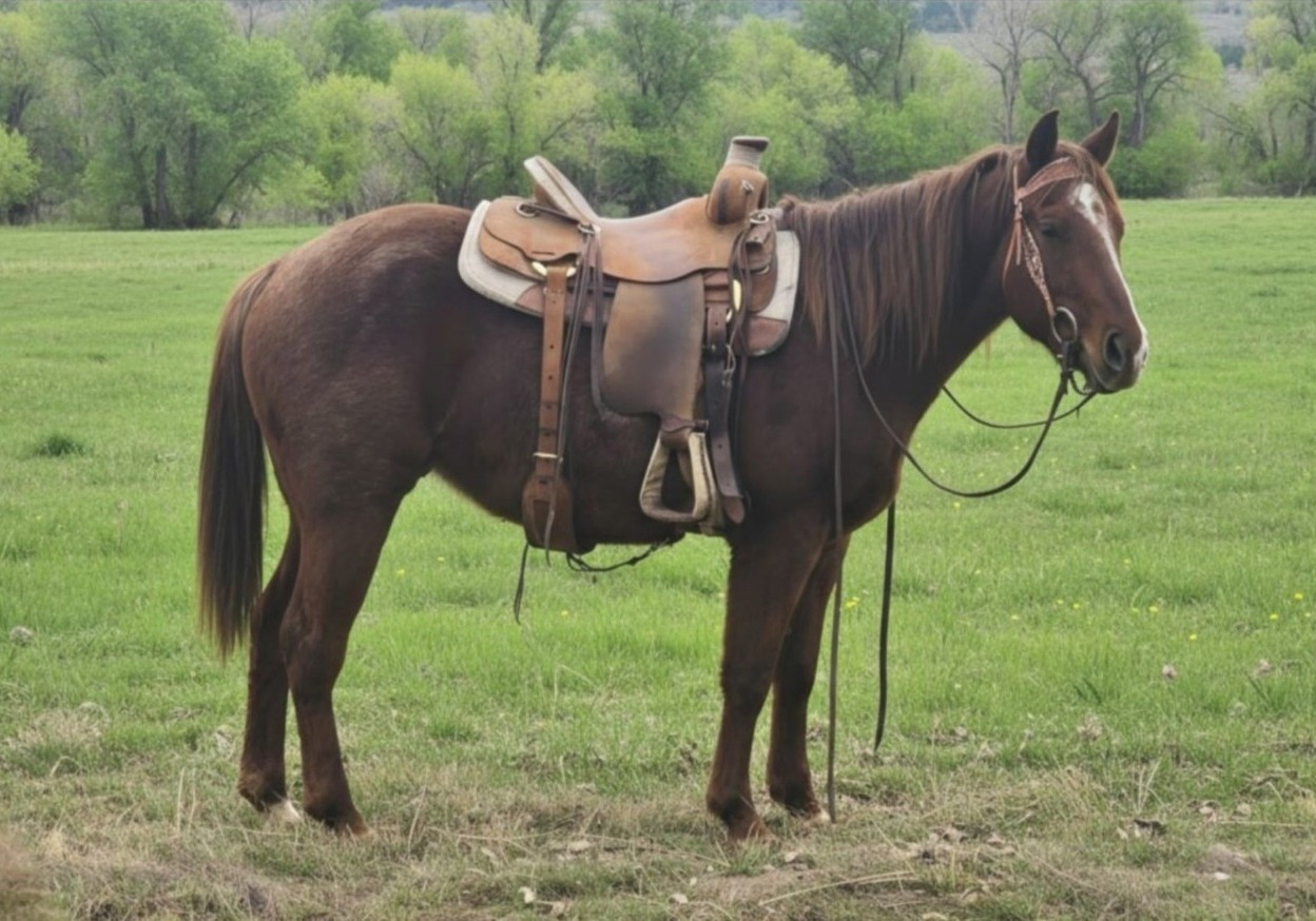 "Snacks" 2023 Red Roan Quarter Horse Gelding. Snacks is a 14.3H red roan gelding that weighs 1000 lbs. He is a in your pocket; follow you everywhere type of horse! Snacks was used to pack mineral to cattle as a 2 yr. old and has crossed water, went through the timber, through the sagebrush and rocks in the hills. Snacks tacks up easily and does everything with ease. He will have at least 45 days by sale time! He has no bad habits, has learned to travel in big country and has seen alot!! He has no bad habits and is definitely youth suitable from where he is to confidently proceed with as a project! This little frosted red roan is a cool dude and has a sweet and willing disposition! Don’t overlook this one! 100% sound and ready to go on with! Saddle up and go!