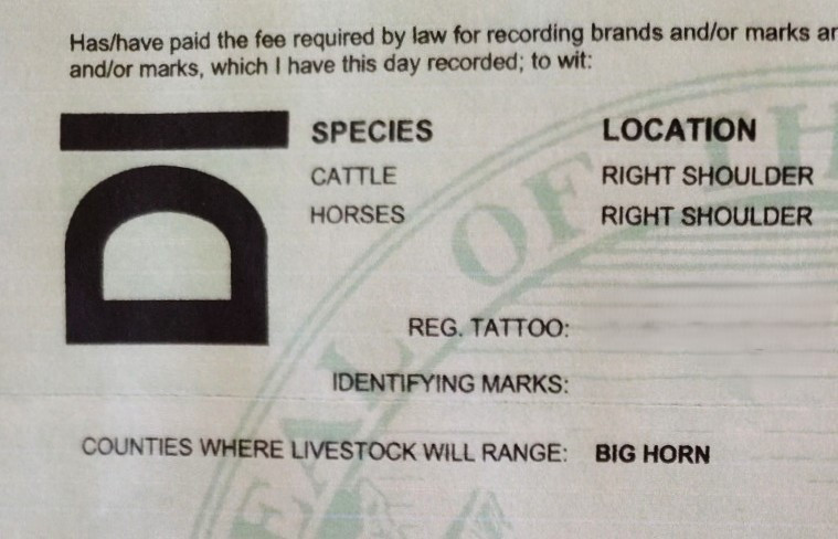 Montana brand Right shoulder for both cattle and horses