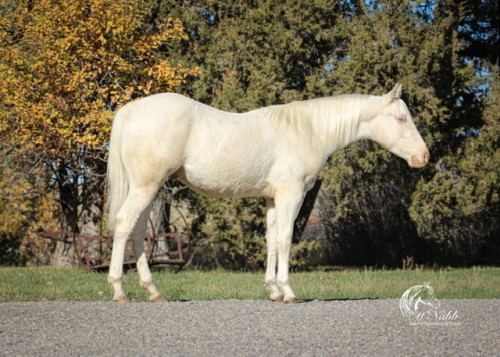 Horses For Bid at Auction: THE BLUE EYED BANDIT – 2024 AQHA Cremello Stallion x Two Eyed Driftin Lad x George Yellow Hand out of Tuff Sundance Kid x Driftin Pep San! SOLD #206439