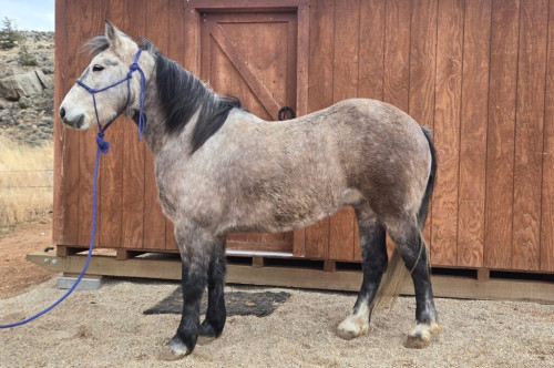 Stash is an outstanding looking and built BLM horse. He stands 14.2 takes a size 2 awesome legs and stylish build. This horse is classy. I rode this horse through the summer guiding trail rides. Then used him in the fall on big gathers and took him in the mountains on a couple hunts. Wants to ride around real soft. Would make an extent bull shagging mount. Ranch horse trail horse or a unicorn if that what you want to make him. Good about his feet no, buck or kick.