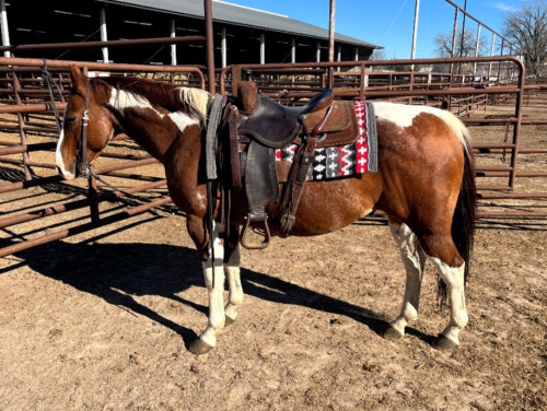 This is a dependable little gelding he is stout made and will do about anything you ask of him. Been used to pen back cattle at sale barn and we have doctored some outside on him. Good neck rein and has never bucked.