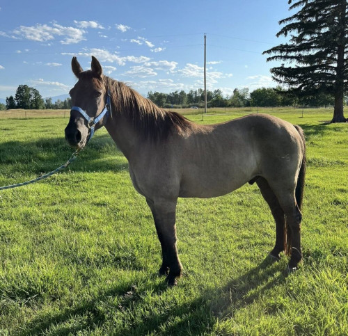 Maverick is a very laid-back Quarter Pony that would make a great kid’s horse. He can do big country work or slow down to a little trail ride. He has been used lately for a heeling on practice calves, gathering cows, has been worked to halter break colts, used hard at the sale barn pushing cattle, and he will gentle down to pony kids around on. He really is not fancy fancy but he is also not scared of a hard day’s work. Anybody can get along with him and ride if you know how to sit in the middle of one. Stands tied, bridles easy, saddles quietly, and great for the farrier. Loads and unloads great. Maverick is an all-around using pony that would make a great addition to any operation.