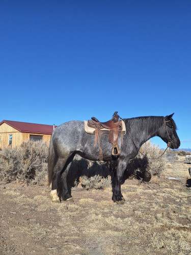 “Mercedes” - 6 year old blue roan Shire x Quarter Horse cross mare - 16 hands