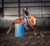 Trix is the kind everyone looks for, and few actually find. She stands a true 15 hands with the substance to carry a variety of riders comfortably, and she does it in style — four high white socks, a bald face, black eyeliner, and bright blue eyes that make her impossible to miss. Trix has been started right with no skipped steps. She is broke the way one should be with a solid reining foundation— beautiful walk-to-lope transitions, correct spins and sliding stops, she rides soft in the face, moves off leg and seat with ease, and neck reins lightly one-handed. Trix is sensitive in a good way—light, responsive, and wants to please. She is started on barrels and is currently loping a gorgeous barrel pattern with natural rate and athleticism. She has the foundation to make a competitive barrel horse, go back to reining, or step into ranch versatility, reined cow horse, sorting, roping, or whatever direction you would like to take her.