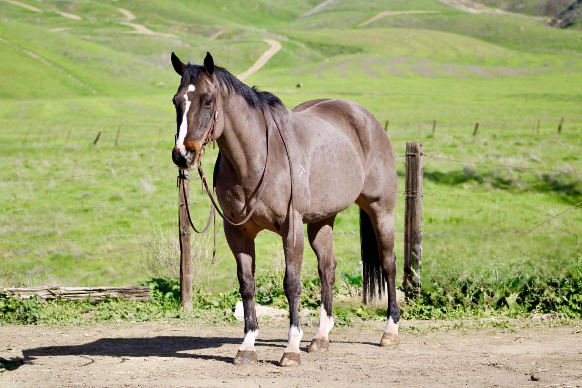 Nelson is a big, solid conformationally correct, 15.1HH bay gelding, 14 years old, and the kind of once-in-a-lifetime horse that defines the word exceptional. He is a true, bona fide ranch horse, a finished switch-ender team roping horse, and one of the safest, most dependable trail horses you will ever own. Horses with this level of experience, versatility, and honesty are extremely rare. Nelson is the ultimate confidence-builder. Whether ridden daily or left off for months, he comes out exactly the same every time, quiet, reliable, and ready to go to work. He has absolutely no buck, no spook, and no silly behavior. His demeanor is steady and kind, making him suitable for riders of any age, size, or experience level. He is the definition of a horse you can trust. On the trail, Nelson is truly bombproof. He is sure-footed and confident in all terrain, willingly crossing water, brush, logs, and steep or rocky ground without hesitation. Wildlife, traffic, and new environments do not bother him. He is the type of trail horse you can relax on, knowing he will take care of you every step of the way, whether you’re enjoying a quiet ride or covering long miles. In the arena, Nelson is broke, fancy, and soft. He carries a low head, stays collected, and lopes beautiful, correct circles. He has a big, honest stop and turns smoothly with minimal cue, light in the bridle and easy to guide with a loose rein or neck rein. In the roping pen, Nelson is seasoned and dependable. He stands calm and flat-footed in the box, scores off your hand, runs hard, and has excellent rate to the cow. He is big and powerful enough to pull hard when asked, yet remains gentle, forgiving, and easy to handle allowing even beginner riders to rope and ride him with confidence. Nelson is a true barn favorite and a horse that is incredibly difficult to let go of. His combination of talent, safety, versatility, and honesty is something that simply does not come around often. Watch his video and come see him in person, Nelson is the kind of gelding that speaks for himself. He is located in Bitterwater, CA. Contact Cheyenne for more information at 831-537-8746.