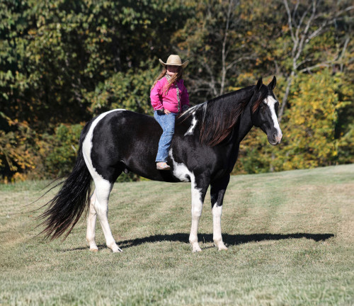 Summer Bandit, the only thing that this bandit would steal is a kiss!!! Bandit is a 15.1hh, 2016 model registered American Paint Horse, gelding with beautiful markings, he is stout built with muscles upon muscles with that long flowing mane and tail he belongs on the cover of a magazine… Bandit has been a special horse to us since we started him back in 2019 when he was a 3 year old. We knew from the start that he was a special horse! He was so smart, so friendly and easy going, that training was a breeze! Bandit cruised right through our natural horsemanship program where he learned to ride bridleless, learned to lay down and learned how to set. Since those days Bandit has been trail ridden countless miles. He has been camping and ridden in multiple states surrounding Kentucky, also including Pennsylvania and Missouri. Bandit has been ridden by all ages of beginners, all of our kids and he is totally safe and easy going! He has been ridden around the ranch, penned and sorted cattle. He has been hauled to rodeos, carried the flag for the grand entry, penned and sorted the bulls and our girls used him to give pony rides on where kids and adults lined up to take him for a spin! The lights, speakers, crowds… nothing phases him! Bandit is simple and easy to ride, he has a smooth trot, takes his leads in a smooth easy to set lope and will lope nice circles on a draped rein. He neckreins around, has a good stop, sidepasses to open/shut gates and backs with ease. Bandit has been exposed to all kinds of wildlife and is traffic safe. We have ridden him through town, the drive thru and past Wal-Mart as well. Bandit is great on the trails, as he has carried our kids through rocky terrain, across deep water, up/down slopes and across deadfall. He is not spooky and has been around tarps, wind dancers, bull whips and gun fire. In addition to riding western he has been ridden English and has been over the jumps! Bandit holds steady coming into the jumps and lands balanced. Bandit enjoys grooming time with the kids, where he will get scrubbed down, washed off and braided up, he is Mr. Personality! If you need a safe horse that the whole family can enjoy whether that be around the ranch, on the trails, over the jumps or one to just lay down and take a nap with… Bandit is available to ride and see in Mt. Vernon, KY until the week of the sale Feb. 16-21. Call for more info or if you have any questions 606-308-2461.