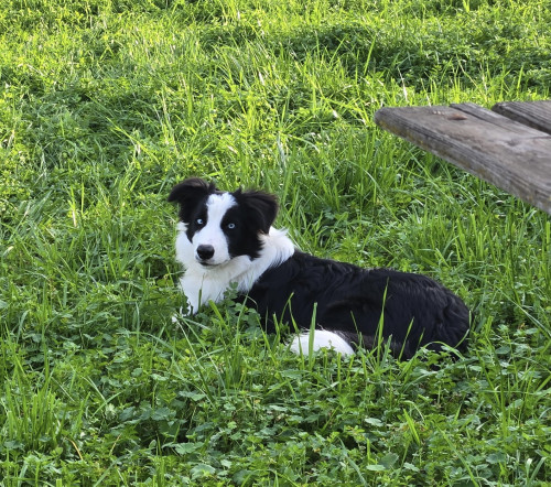 Intake AKC male Border Collie. Training started. Gentle nature. Great with kids and other pets. Born 6/25.