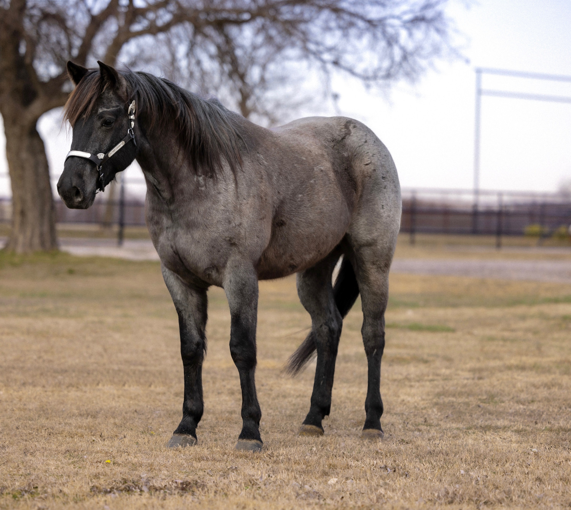 Horses For Bid at Auction: Blue - 4 Yr old 15hh Blue Roan AQHA Gelding - Finished Heel Horse! #207078