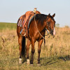 Dagger is always eager to please and gets along with everyone. He fits right into the herd, is an easy keeper and can take time off. We appreciate how confident he is in himself and it shows with how comfortable he is riding off alone. Clipping, bathing, deworming, shoeing, etc. is all a breeze with him.
