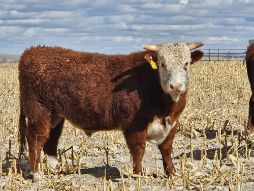 2 year old, registered Hereford bull. Thick and well-made, originally from Ridder Herefords out of Nebraska, now located in Lingle, Wy.