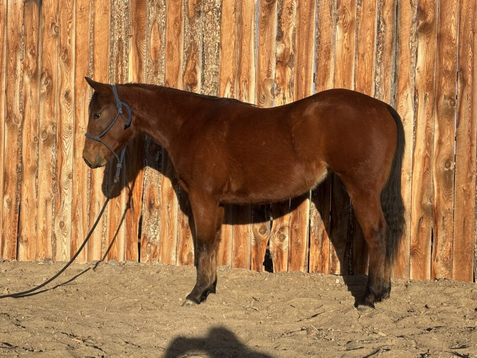 Horses For Bid at Auction: LITTLE MISS SMOOTH – 2024 AQHA Bay Mare x Smooth Sixtys CD x Smooth As A Cat out of Little Miss Dry Star x Dry Bonitas Santo! #207393