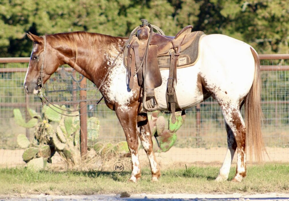 Dos is an eye-catching Appaloosa gelding with plenty of shape and lots of chrome. He stands 14.3 and weighs 1125. Dos was shown in Halter as a weanling and was the Year End Top 10 Finalist. Since then, he has been used on the ranch and is good to pen and doctor cattle on. Dos is gentle, kind, and easygoing—a great fit for the entire family. Whether you want a ranch horse or a trail horse, he’s ready to go.