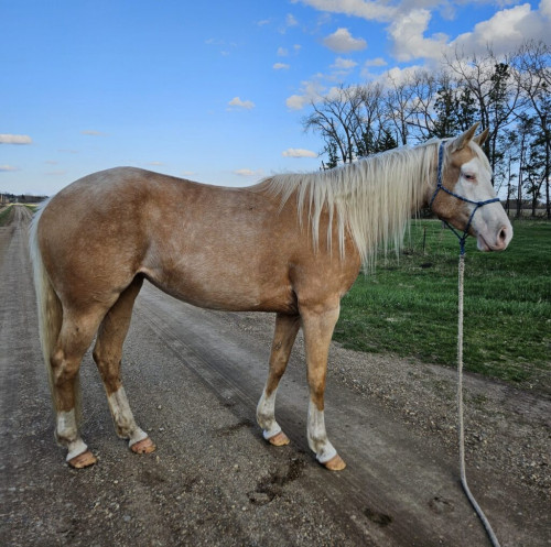 Horses For Bid at Auction: BLINGED UP N BLAZEN – 2021 AQHA Palomino Mare x Blazen Man x Sak Em Frenchman out of Next To Texas x Texas High Dasher! #207449